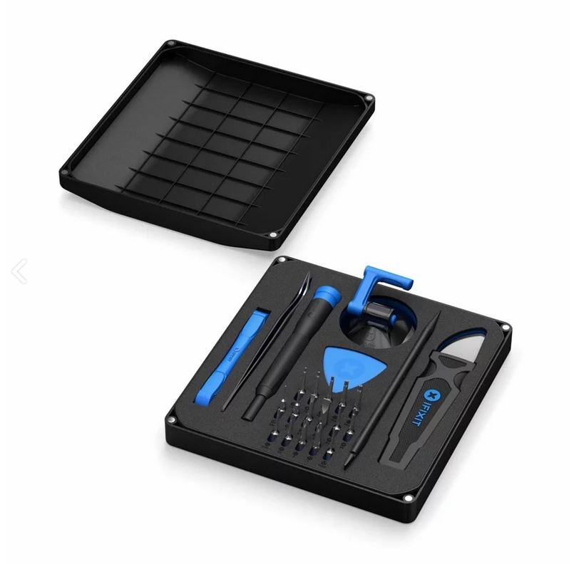 Pakkeindhold Håndtag til skruetrækker, 4 skruetrækkerbits – phillips PH000, PH00, PH0, PH1, spudger, sugekop, curved tweezers, SIM-kortudstøderværktøj, åbningsværktøj, 6 åbningshakker, Jimmy-åbningsværktøj, 2 screwdriver bits – pentalobe P2, P5, 3 screwdriver bits – slot 1, 2.5, 4 mm, 2 screwdriver bits – torx T4, T5, 3 screwdriver bits – tamper-proof torx TR6, TR8, TR10, screwdriver bit – tri-point Y000
